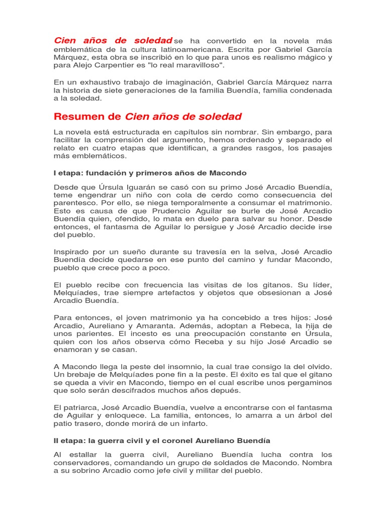 Un discurso que reafirma la apuesta por la creación de una nueva perspectiva del. Te recomendamos leer todos los resúmenes pues cada resumen se enfoca en acontecimientos diferentes. Cien años de soledad Resumen y Análisis Capítulos 1-2 Resumen Capítulo 1 Macondo es una pequeña y aislada aldea situada a orillas de un río y rodeada de ciénagas.